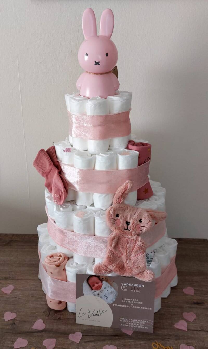 Deze luiertaart heeft uit 4 lagen en bestaat uit: